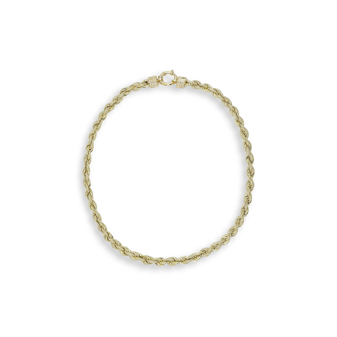 Este collar de cordón de oro de 18 quilates es un clásico atemporal reinterpretado con carácter y cuidado artesanal. El sólido y armonioso eslabón trenzado alterna acabados pulidos y satinados que aportan movimiento y delicados reflejos, realzando la calidad de la artesanía.