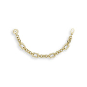 Le bracelet Linea incarne l'équilibre parfait entre structure et légèreté. Confectionné en or jaune 18 carats, il présente des maillons géométriques creux qui évoquent la force d'un design architectural tout en conservant une allure aérienne et contemporaine. Les volumes généreux des maillons alternent avec précision, créant une silhouette à la fois épurée et fluide qui épouse gracieusement le poignet. Le fermoir gravé devient un élément décoratif et distinctif, transformant une fonction technique en signature stylistique.