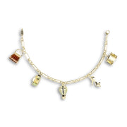Le bracelet Sogni Appesi en or 18 carats est orné de breloques uniques et symboliques qui représentent la magie des rêves et des passions : un sac, un appareil photo, une montgolfière, un talon haut et un canapé.