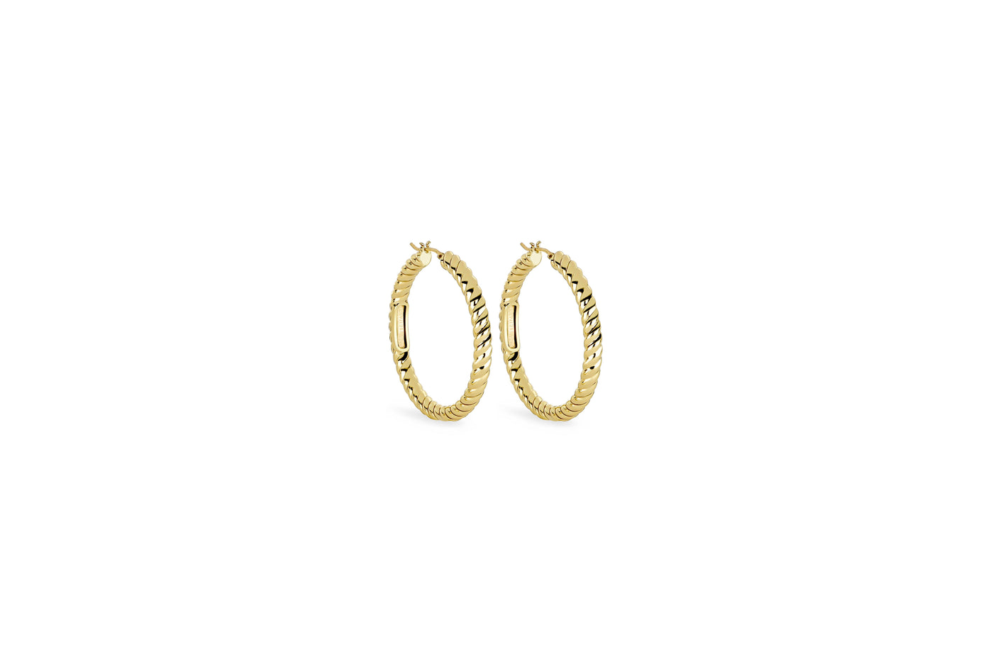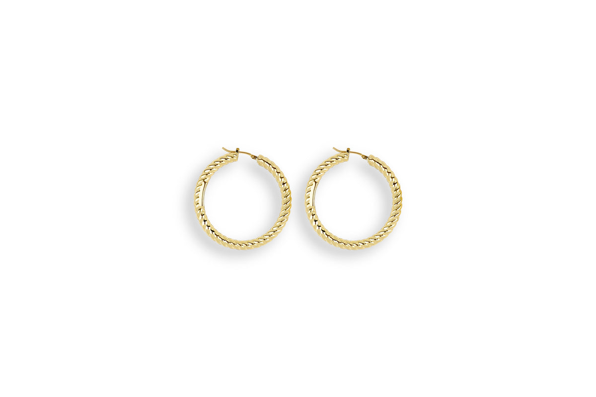 Les boucles d'oreilles Timeless Spirale de la ligne Graziella Air sont des créoles ornées d'une structure en spirale torsadée qui capte la lumière sous tous les angles. Réalisées en or 18 carats avec une finition polie, elles se distinguent par leur légèreté exceptionnelle, fruit d'un travail soigné et innovant, conçu pour offrir confort et sophistication en toute occasion.